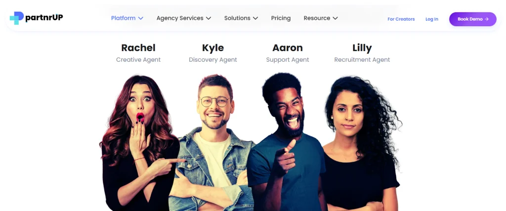 In this case, you should consider partnrUP. This is not a traditional influencer marketing platform, but an AI-powered solution that takes a different approach. Four specialized AI agents (Kyle, Lilly, Rachel, and Aaron) automate the entire campaign lifecycle through real-time creator sourcing that finds perfect candidates, whether they’re in any database or not, to automated payment processing, making influencer marketing accessible with the lowest barrier to entry possible.